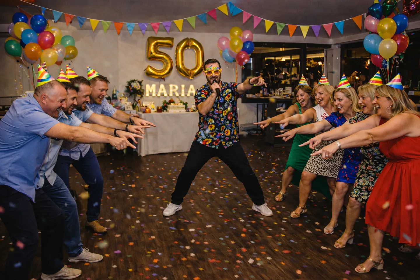 ¡Por supuesto! Nuestro karaoke con animador o un monólogo personalizado con anécdotas vuestras son un éxito garantizado en este tipo de fiestas.